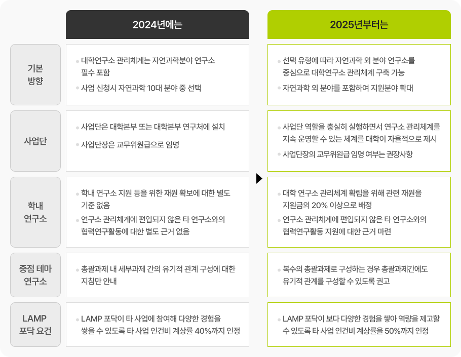 대학을 명실상부한 새로운 지식 창출의 중심지로 만드는 것입니다. 2025년도 대학기초연구소지원사업에 도전해 주십시오!