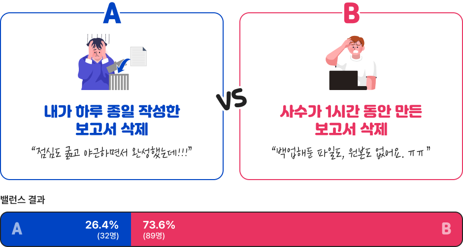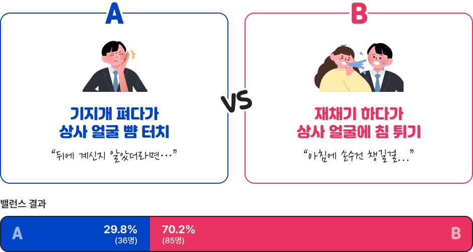 살다보면 두 가지 갈래 중 하나를 골라야할 때가 있습니다. 순간의 선택은 모이고 모여 개인의 취향을 만들고, 크게는 삶에 활력을 불어넣기도 하는데요. 재미있는 건 모두의 선택이 다 같지 않다는 사실. 밸런스 실험실에서는 일상 속에서 마주칠 법한 고민에 대한 여러분의 답을 탐구하며 지친 하루에 작은 쉼표를 찍어봅니다.