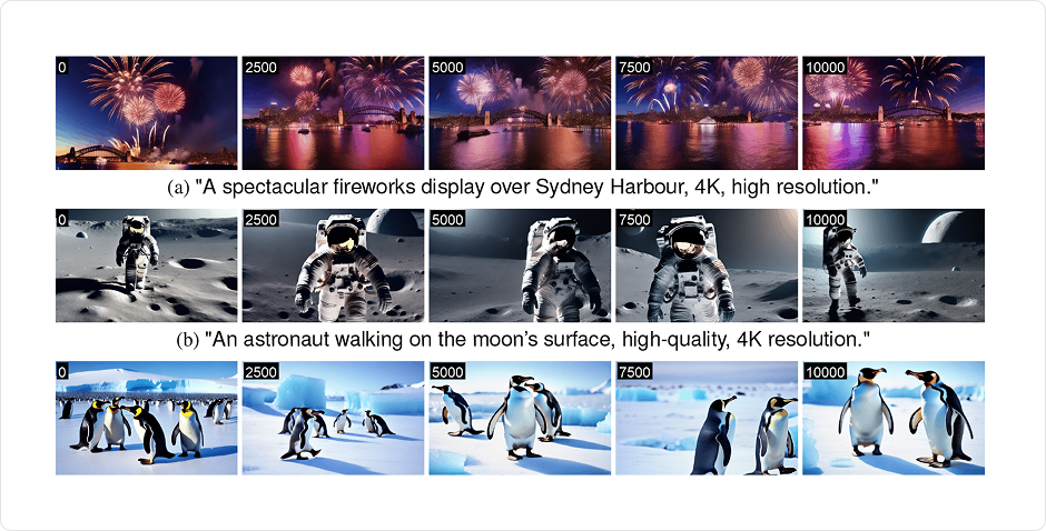 10,000 프레임에 해당하는 비디오를 생성했음에도 불구하고, 비디오의 내용과 품질이 정확히 유지되었다.