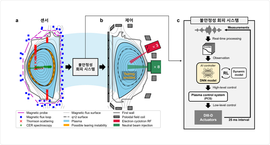 ※ https://www.nrf.re.kr/page/369?ac=view&searchType=&searchText=&pageNum=2&ntsCat=&ntsCat2=&card Ac=&menuNo=369&boardNo=146&menuTypeCd=MENU_TYPE_05&postNo=246911중수소(D)와 삼중수소(T)를 연료로 막대한 에너지를 얻는 인공태양(핵융합). 오염물질을 배출하지 않아 인류가 꿈꾸는 차세대 에너지로 꼽히는데요. 중앙대학교 서재민 교수 연구팀이 딥러닝과 강화학습을 결합한 AI 제어 시스템을 개발하고 실제 장치에서 성능을 검증해, 핵융합 장치의 장시간 안정적인 운전과 에너지 효율 향상에 기여했습니다.