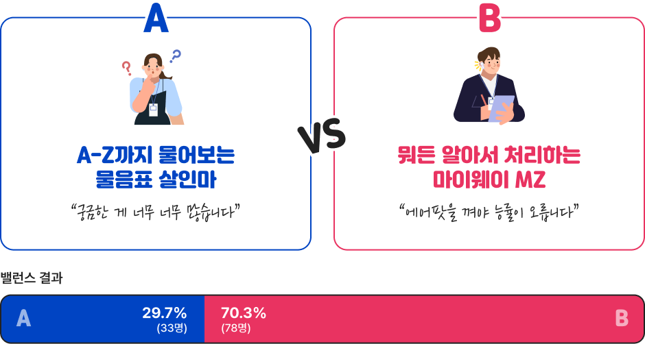 살다보면 두 가지 갈래 중 하나를 골라야할 때가 있습니다. 순간의 선택은 모이고 모여 개인의 취향을 만들고, 크게는 삶에 활력을 불어넣기도 하는데요. 재미있는 건 모두의 선택이 다 같지 않다는 사실. 밸런스 실험실에서는 일상 속에서 마주칠 법한 고민에 대한 여러분의 답을 탐구하며 지친 하루에 작은 쉼표를 찍어봅니다.