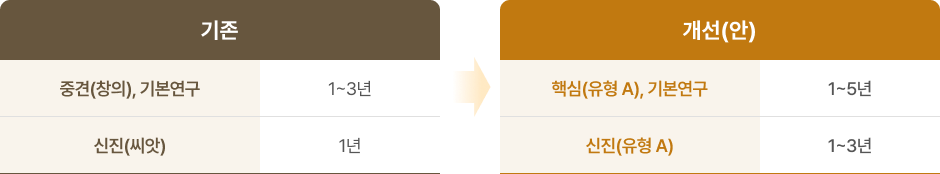 | 기본연구 A | 연 0.5억 원 | 생애 첫 수행, 경력 단절 연구자 | ||||