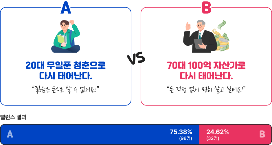 살다보면 두 가지 갈래 중 하나를 골라야할 때가 있습니다. 순간의 선택은 모이고 모여 개인의 취향을 만들고, 크게는 삶에 활력을 불어넣기도 하는데요. 재미있는 건 모두의 선택이 다 같지 않다는 사실. 밸런스 실험실에서는 일상 속에서 마주칠 법한 고민에 대한 여러분의 답을 탐구하며 지친 하루에 작은 쉼표를 찍어봅니다.