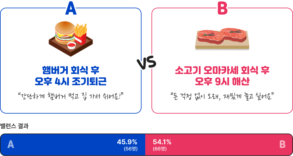 살다보면 두 가지 갈래 중 하나를 골라야할 때가 있습니다. 순간의 선택은 모이고 모여 개인의 취향을 만들고, 크게는 삶에 활력을 불어넣기도 하는데요. 재미있는 건 모두의 선택이 다 같지 않다는 사실. 밸런스 실험실에서는 일상 속에서 마주칠 법한 고민에 대한 여러분의 답을 탐구하며 지친 하루에 작은 쉼표를 찍어봅니다.