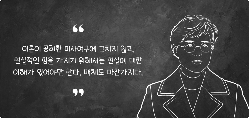 새로운 매체를 둘러싼 논의는 긍정과 부정 사이에서 갈등하는 경우가 많습니다. 하지만 어떤 입장을 취하기 전에, 먼저 지금 마주하고 있는 매체 환경에 대한 정확한 이해가 전제되어야 한다고 생각합니다. 내가 소통하고 있는 매체의 특성, 매체에 의해 매개된 소통 방식 그리고 매체가 지닌 편향성과 조작 가능성까지 성찰하는 태도가 필요합니다. 결국 현실을 제대로 이해해야 전망이 생기고, 문제 해결의 가능성도 열릴 수 있다고 보기 때문에, 이 문장을 새해 인사처럼 전하고 싶습니다.