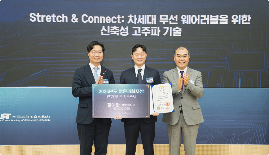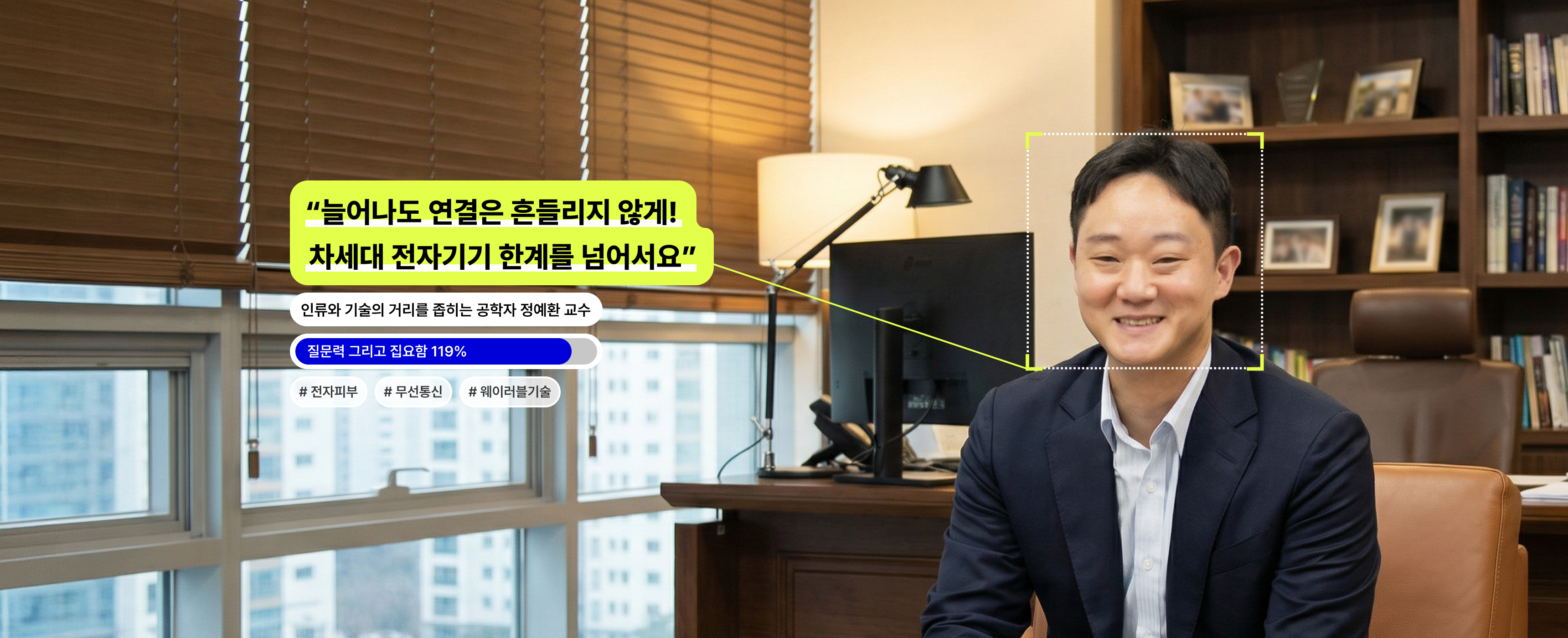단단해 보이던 기술의 경계에서 던진 질문의 답을 찾아 연구자의 길을 걸어온 이가 있습니다. “전자기기는 왜 꼭 단단해야만 할까?”, “우리 몸처럼 부드럽게 휘어지는 전자기기는 구현할 수 없을까?”라는 근본적인 의문에서 시작된 그의 탐구는 전자기기의 형태와 쓰임을 확장하며 새로운 응용 가능성을 열어왔습니다. 이번 뉴-페이스에서는 차세대 폼팩터 구현을 위한 핵심 공학적 난제들을 해결하며 제29회 젊은과학자상을 수상한 한양대학교 정예환 교수를 만나봅니다.