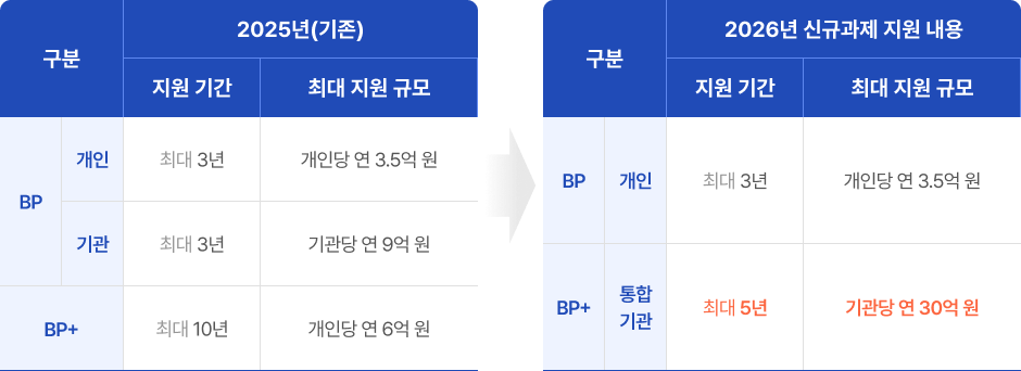 글로벌 기술 패권 경쟁이 가속화되는 오늘날, 국가 경쟁력의 핵심은 결국 ‘인재 확보’에 달려있다 해도 과언이 아닙니다. 재단은 그동안 ‘해외우수과학자유치사업(BP/BP+)’을 추진하며, 세계적인 연구 역량을 갖춘 해외 인재를 발굴하고 국내 연구 현장에 안착시킴으로써 연구 환경 국제화와 신성장동력 확보에 중추적인 역할을 해왔는데요. 2026년에는 글로벌 환경에 발맞춰 한 층 더 도약을 준비하고 있습니다. 사업 예산을 전년 대비 158억 원(40.7%) 대폭 증액하여, 전폭적인 지원을 통해 국가 과학기술 역량 강화와 국제 경쟁력 제고에 더욱 속도를 낼 예정입니다.